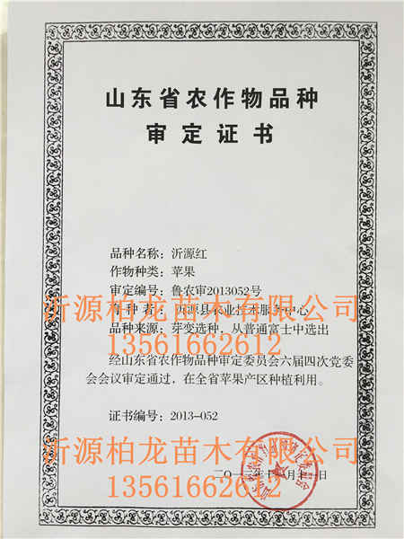 沂源柏龍苗木有限公司(柏龍苗木基地),建在魯山山麓8518核桃選育地,是沂源資質深,規模大,經驗足的專業實體苗木公司。早在70時代就為林業局定點苗木基地。2006年選育8518核桃苗。公司做事以誠信為宗旨,創新為目標,已逐步打造出柏龍系列的品牌苗,先后選育了750萬株8518核桃苗,遠銷21個省市。2012年隨市場需求,增育了文玩核桃苗(麻核桃),同時在縣政府指導下進行培育了“沂源紅”蘋果苗。“沂源紅”蘋果苗一經問世,因其是短枝型,易管理,結果早,產量高,果色艷麗,條紅,口感爽脆,是名副其實的優質品種。